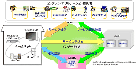 NTT Comは、新たに開発した端末認証方式を用いて、ディジタルテレビをネットに接続する際の複雑な初期設定や、ネットショッピングの際のID・パスワードの入力作業などを簡素化し、「誰でも・簡単に・安心して」ディジタルAV機器でインターネットを利用できるようにするための基盤システム「IAMS(Information Appliance Management System、情報端末マネジメントシステム)」を開発しました。