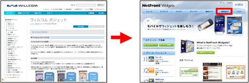 ACCESSは、2008年7月に、携帯端末および情報家電向けウィジェット・トータルソリューション「NetFront Widgets」をウィルコム向けに提供し、「ウィルコム ガジェット」の実現に貢献したほか、「NetFront Widgets」コミュニティサイト上においても、「ウィルコム ガジェット」に対応するウィジェットコンテンツをいち早く公開するなど、同サービスを多方面においてサポートしています。