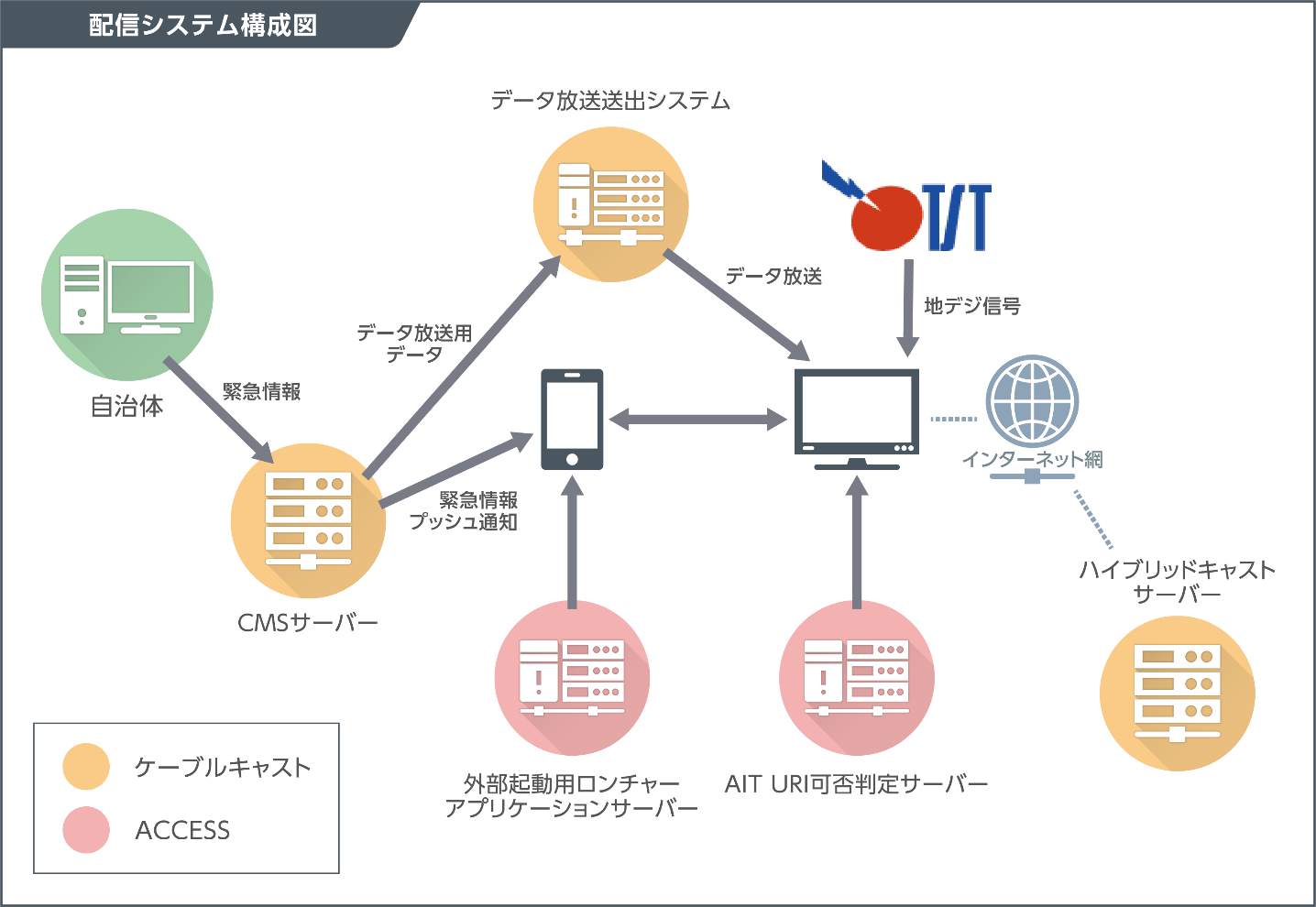 となみ衛星通信テレビ株式会社(以下、TST、所在地:富山県南砺市八塚568-2、代表取締役:河合 常晴)、ジャパンケーブルキャスト株式会社(以下、ケーブルキャスト、本社:東京都千代田区、代表取締役社長兼COO:大熊 茂隆)、株式会社ACCESS(以下、ACCESS、本社:東京都千代田区、代表取締役 社長執行役員:大石 清恭)は「ハイコネを活用した災害時の緊急情報配信」を2019年9月1日、富山県砺波市で開催される砺波市総合防災訓練(高波会場)にて実施いたします。