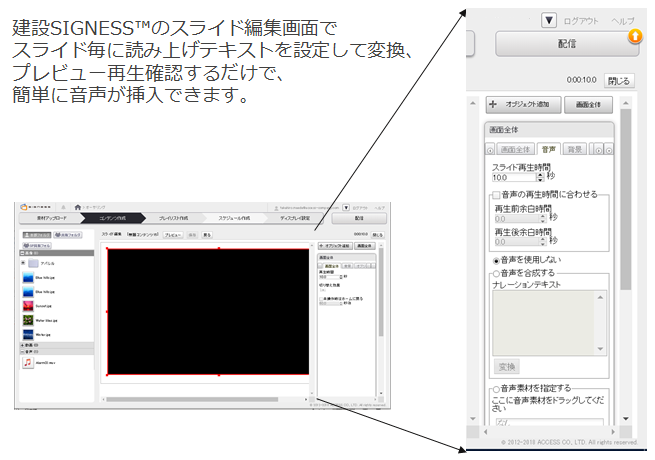 「建設SIGNESS」音声読み上げ機能 国内で初めて、スライド毎の音声挿入に対応