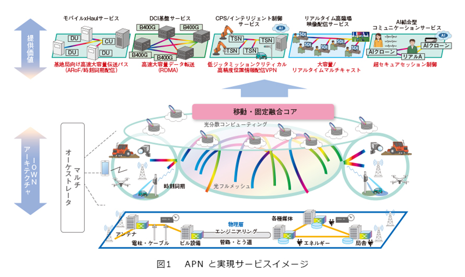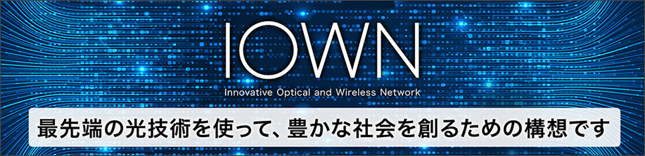IOWNは光を中心とした革新的通信技術を活用し、高速大容量通信を手軽に使えることにより、あらゆる情報を基に個と全体との最適化を図り、膨大な計算リソースを地理的制約を排除し分散配置可能な、端末を含むネットワーク・情報処理基盤の構想です。