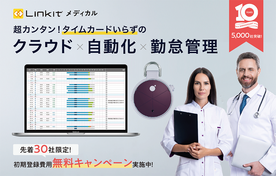 また、本日10月8日より、「Linkit 勤怠」および「Linkit エリア探索」をご契約いただくお客様を対象に、先着30社限定で初期登録費用を無料※とするキャンペーンを開始いたします。